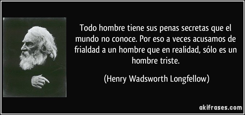 Carlina1950 #CuidarteEs#Cuidarnos on Twitter: "#Reflexiones "Todo hombre tiene sus penas secretas que el mundo no conoce. Por eso a veces acusamos de frialdad a un hombre que en realidad, sólo es un